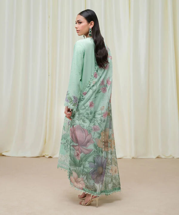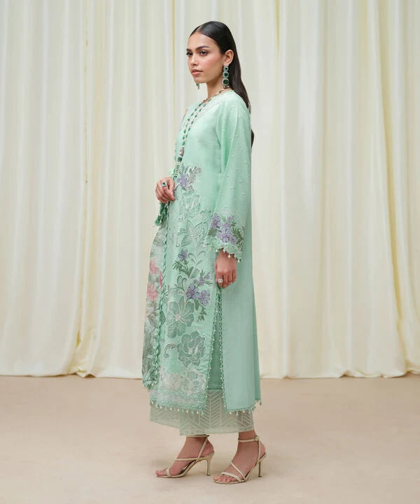 Step into timeless sophistication with this mint green embroidered winter cotton ensemble by Nimra B Winter Collection. Crafted in premium winter cotton, the outfit ensures both warmth and comfort while exuding an aura of effortless elegance—perfect for the cooler season.